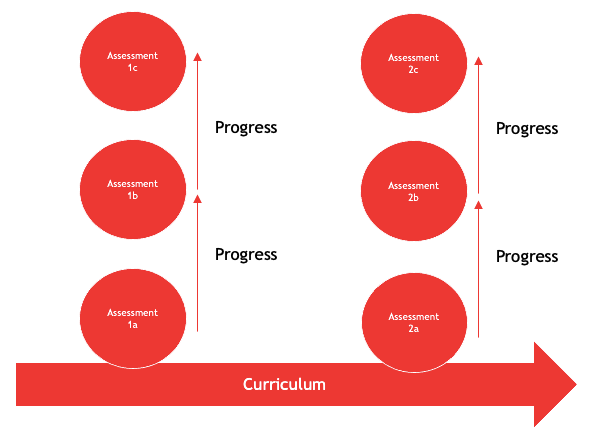 Really, the purpose of assessment is to find out where students are in the curriculum. This might be in relation to a specific fact or concept, a narrow body of content or a wide body of content. Any positive change indicates progress, of which there are two types: horizontal progress and vertical progress.